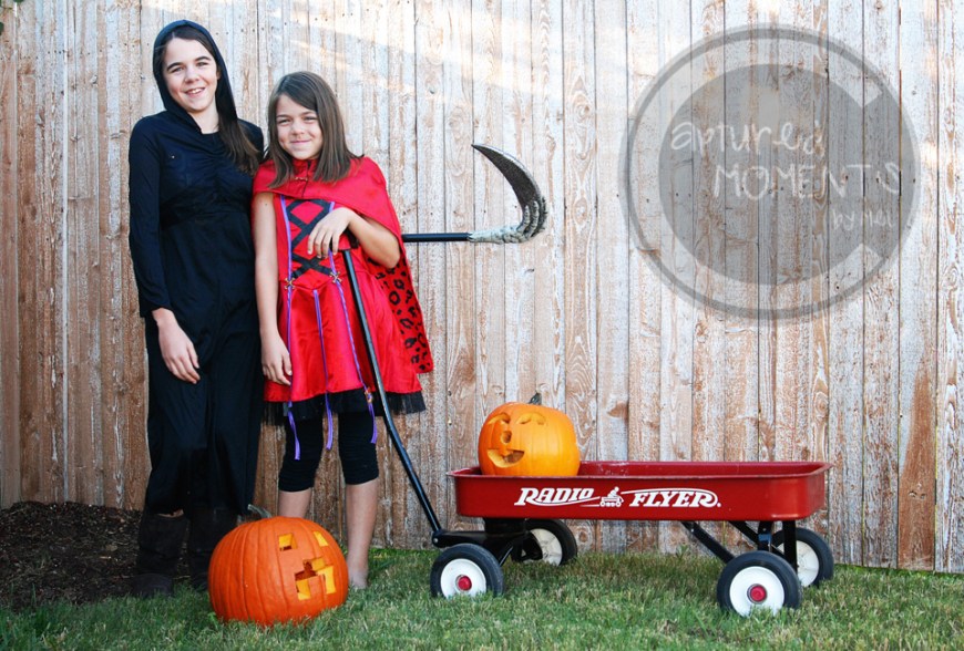 I hope everyone is ready for Halloween!  We are!!  We moved into our new house a few months ago and I’ve so been looking forward to the holidays.  To kick off the season we did our traditional pumpkin carving then onto pictures!  I had seen a video post by Brooke Snow http://blog.brookesnow.com/2012/10/22/halloween-photos/ (her site is in my blogroll) about doing photos before Halloween.  Don’t know why I hadn’t thought of it before.  What she said made perfect sense.  By doing this the girls had much more fun playing in their costumes and giggling up a storm.  Now come Halloween, I won’t hear, “Can we just go now, mom?” or “I don’t want to take any more pictures!”.  We can head out and they can collect all sorts of Halloween treats!!!!